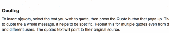 To insert a quote, select the text you wish to quote, then press the Quote button that pops up. There is no need to quote the a whole message, it helps to be specific. Repeat this for multiple quotes even from different posts and different users. The quoted text will point to their original source.